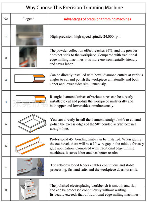 دستگاه روتر آکریلیک سایدکس ابزار روتر CNC ایده آل برای کمک به شما در پردازش آکریلیک سریع و دقیق است.اين ماشين براي برش زاويه 45 درجه مناسب استاین دستگاه دارای گواهینامه CE است و با یک قاب زاویه ای آهن و بسته بندی چوبی ارائه شده است، که آن را به یک گزینه امن و قابل اعتماد برای هر کارگاه تبدیل می کند.